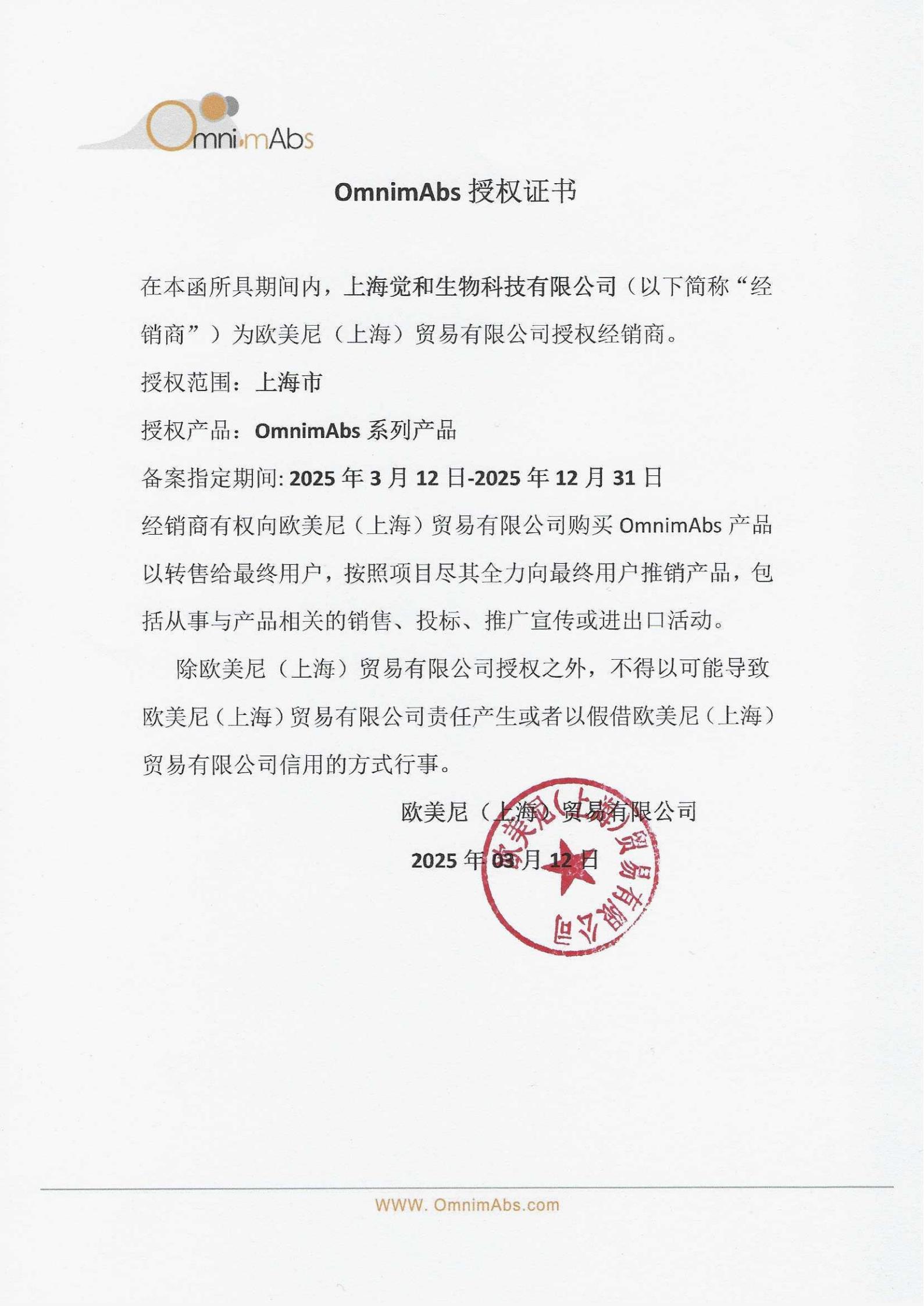 OmnimAbs代理授权书