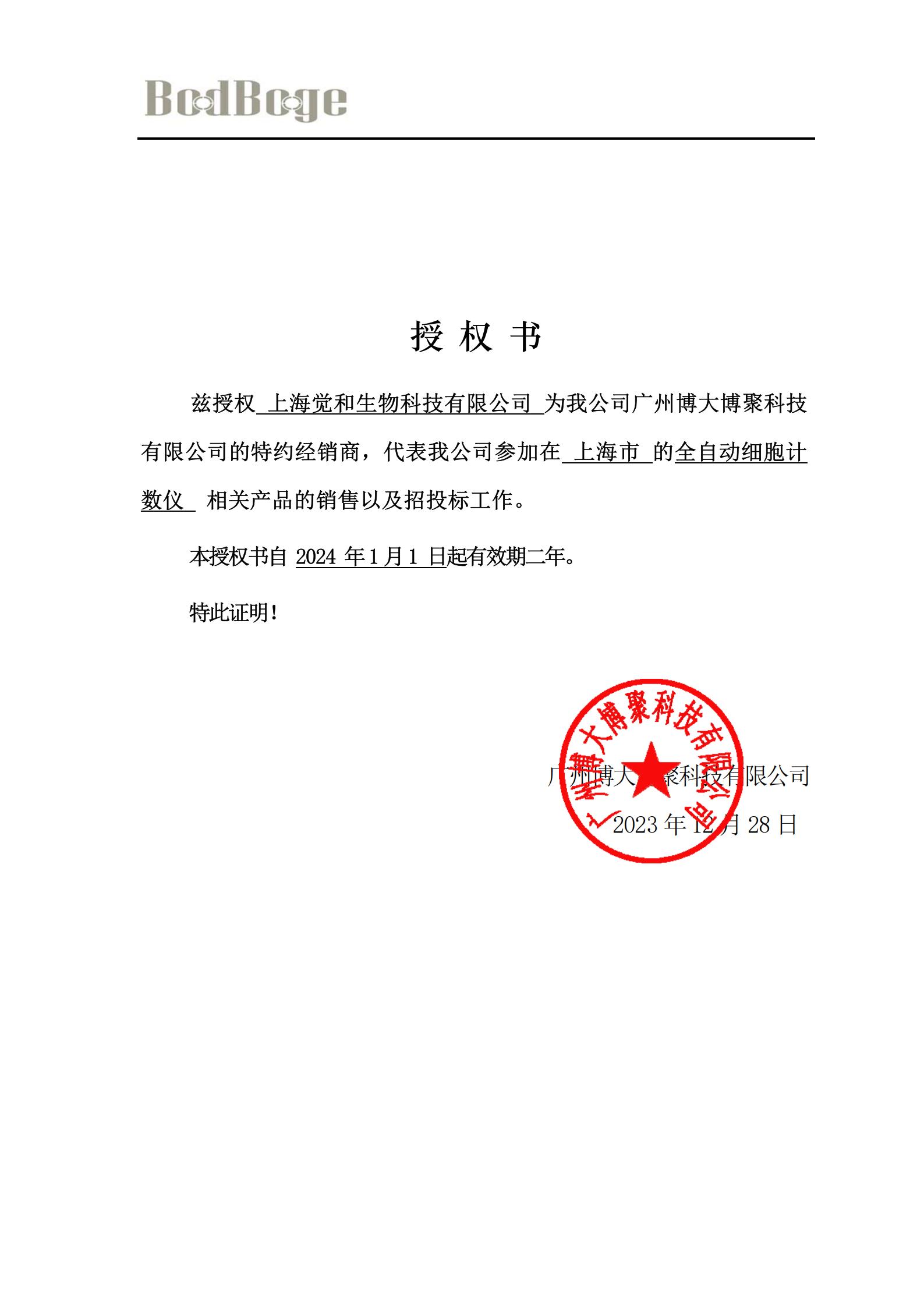 BodBoge代理授权书